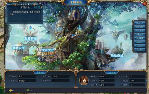 1、玩家可以在军团领地查看军团设施和军团功能。