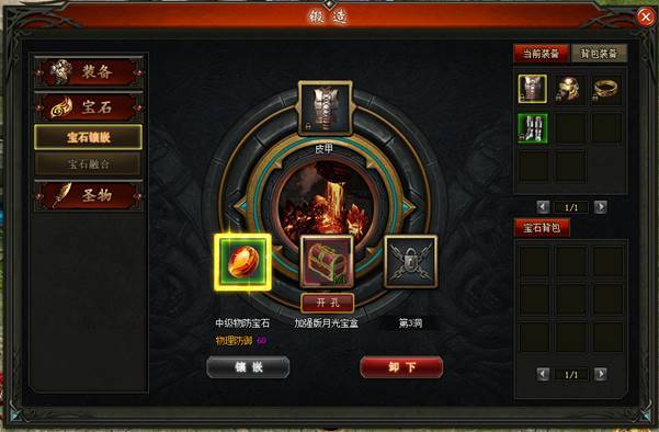 l未开孔的装备需要先开启对应的孔槽后才可以进行宝石镶嵌。